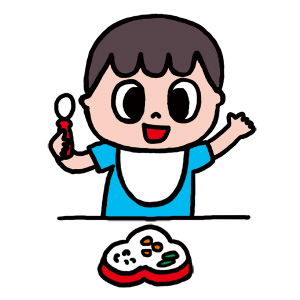 新しく買った食器が使いやすかったのか、初めて自分でスプーンを使って、ご飯を食べることができました!