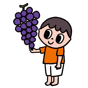 ぶどうさん。でも、すごく酸っぱそ~に食べるんです(笑)。