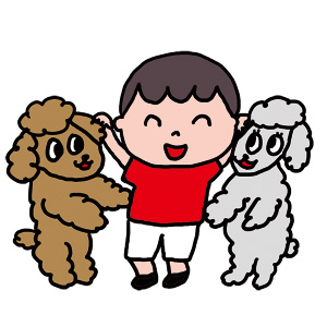 とても可愛いワンちゃんたちに遭遇しました。犬好きの息子は大喜び! 一緒に写真も撮らせてもらい、休日のうれしい出来事でした。