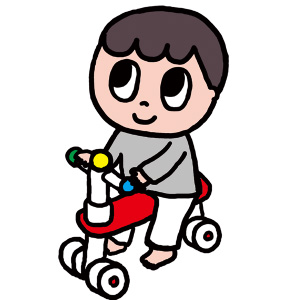 大人しいなーと思い、ふと見ると、最近やっと一人で乗れるようになった三輪車にまたがり、じ~っと、窓の外を見ている息子。