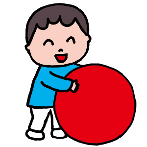 フィットネス用のバランスボールを、「大玉ころがし」のように、リビングから寝室へと転がして遊んでます。