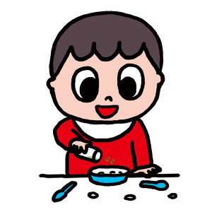 最近は、食べてる途中に飽きてイスから降りたがっても、ビンを渡すと何にでも振りかけ、大人しく食べてくれます。空になったビンを渡すと時も、あるんですけどねー(笑)。正に「魔法の粉」です!!