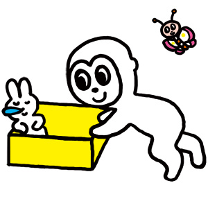 いつもは中に入り、押してもらって喜んでいる段ボールの箱。今日は、ウサギのぬいぐるみを乗せて、自分で押していました。