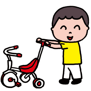 公園に行く時はいつも、息子が三輪車に乗り、私が押して行くのですが、今日は初めて、息子が三輪車を押しました。