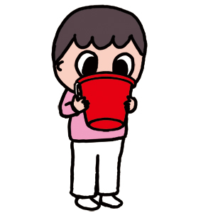 バケツで口元をおおい、反響を楽しんだり、胸をたたきながら声を出して、声の変化を楽しんだりしています。ひとりでケラケラと笑い、楽しそうなのです。