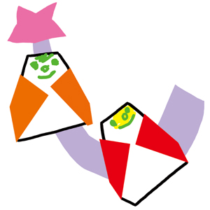 七夕飾りを、保育園で作ってきました。折り紙で作った彦星と織姫、そしてリボンが、ビニール紐に貼ってあります。可愛いので、リビングに飾りました(笑)。