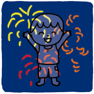 花火大会を見に行きました。初めは迫力に圧倒されたのか、固まっていたのですが、すぐにハイテンションになり、動きと大声で「花火の真似」をし、騒ぎはじめました。