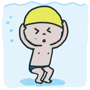 今日のプール教室では、初めて潜ることができましたよ。ただ、その後は、観覧席にいる私に向かって、大泣きしていました。