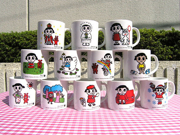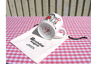 各月ごとにイメージしたイラストが描かれた『バースデー・マグカップ』です。ちょっと、小ぶりな大きさで、布製のポーチが付いてきます。