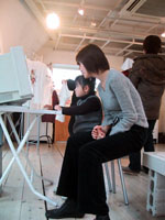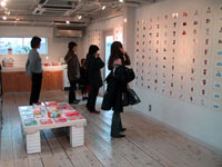 さて、初日には、あいにくの雨にもかかわらず、会場にはたくさんの方が来てくださいました!来てくれた方々の中には、「しやわせかもしれない」を毎日見ていただいてる方や、情報誌を見て来ていただいた方もいて。ギャラリーの松田さんのおかげで、関西地方で10誌ちかくも、この展覧会が紹介されたんですよ!