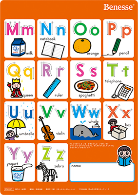 ベネッセコーポレーションさんのお仕事で、3才から小学2年生向け「アルファベットかきじゅん したじき」のイラストを担当させていただきました。デザインもかわいらしく、仕上げていただきました。