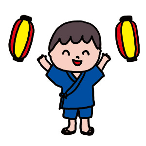 来年は、イラストのように甚平か浴衣を着せて、親子一緒に、お踊りの輪に加わりたいものです。