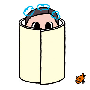 お風呂場から、いつもより早いタイミングで、夫に呼ばれたので行ってみると、お風呂のフタにくるまった泡まみれの息子が!