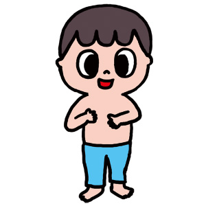 着替える時に、裸になると気持ち良いらしく、胸やお腹をペチペチ叩きながら、ソファーの周りをぐるぐる走り回ります。見てる方も、楽しくなります(笑)。