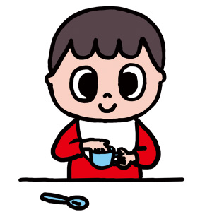 病院から処方された薬を、ヨーグルトにまぜてあげたら、いつものように、おいしそうに食べました。手をコップに入れてなめるほどです。