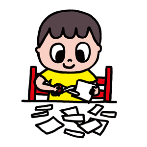 子供用の危なくないハサミを、息子に渡しました。初めて手にしたハサミ。「切れる」ことの衝撃からか、ずいぶんと長い時間、飽きずにチョキチョキしていましたよ(笑)。