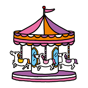 お仕事でメリーゴーランドを描いていて、初めて息子と一緒に乗った時のことを、思い出しました。