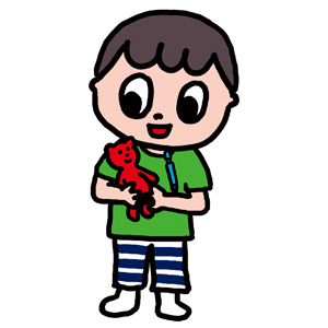 ぬいぐるみを園児に見立てて、朝の登園ゴッコをし、泣いている園児を慰めているマネをして、とても嬉しそうにしていました。