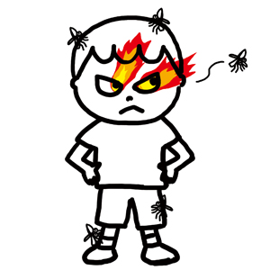 怖い顔をすれば、蚊がよってこないと思っているようです。