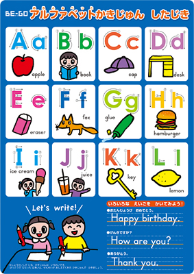 ベネッセコーポレーションさんのお仕事で、3才から小学2年生向け「アルファベットかきじゅん したじき」のイラストを担当させていただきました。デザインもかわいらしく、仕上げていただきました。