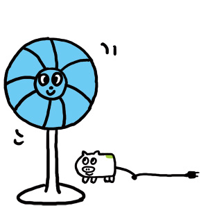 お昼寝している間に、扇風機と蚊取り器を出したら、なぜだか二つとも怖がっていました。
